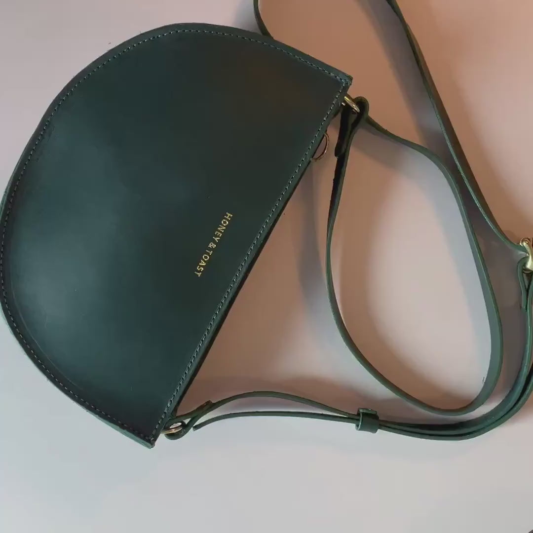 Honey and Toast women's leather handbag Half moon bag pine